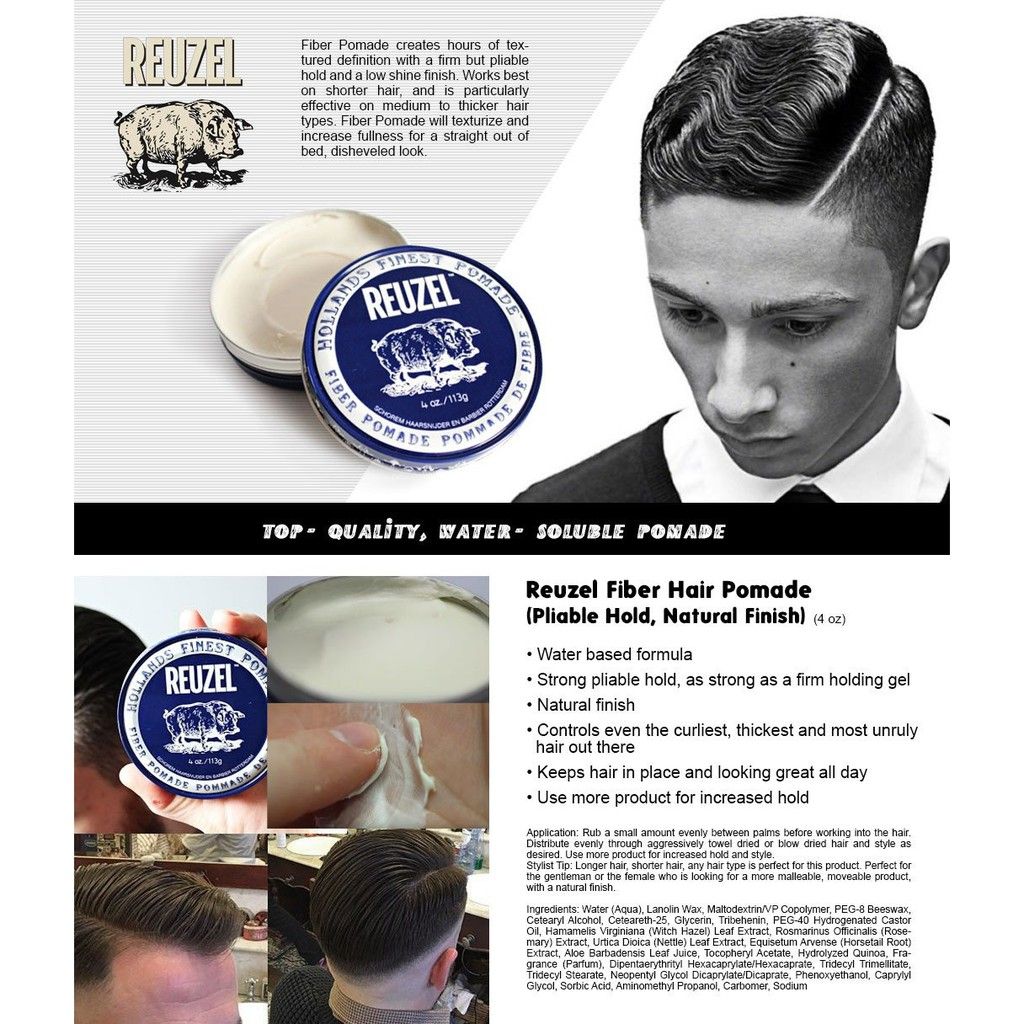 Sáp vuốt tóc Reuzel Fiber Pomade 35g phù hợp với mọi loại tóc